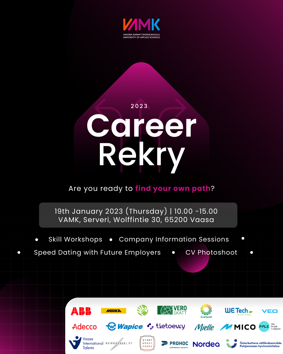 Welcome to the CareerRekry event on January 19, 2023 at 10.00-15.30 organized by Career services