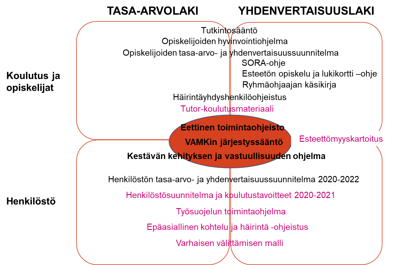 Vaasa University of Applied Sciences’ plan for promoting equality and non-discrimination for the period 2020–2022 included the following development measures: