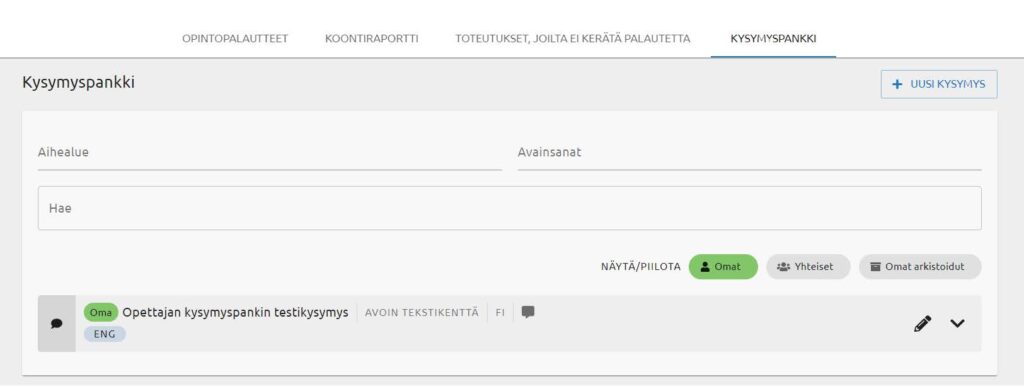 5. Opettajan oma kysymyspankki (Valinnainen ominaisuus)
