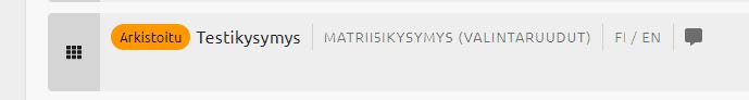 Jos kysymyspankin kysymykseen on jo vastattu kyselyssä niin sitä ei voi myöskään poistaa. Joskus voi olla kuitenkin tarve estää kysymyksen lisääminen kyselyille jatkossa. Tätä tarkoitusta varten kysymyksen voi arkistoida, jolloin se katoaa opettajan ja koulutusjohtajan listauksesta, mutta pääkäyttäjä näkee kysymyksen edelleen halutessaan. Arkistoidun kysymyksen voi myös palauttaa. Arkistoidut kysymykset näkee listalla valittuaan Näytä arkistoidut.