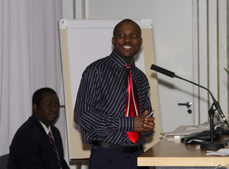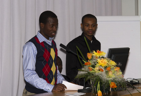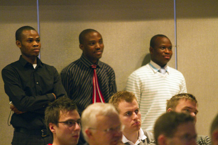 Vamkin opiskelijat Obatolu Adekunle ja Raheem Muftau kertoivat avoimen lähdekoodin ohjelmistoista ja olivat vakuuttuneita, että niille on kysyntää myös Afrikan markkinoilla.