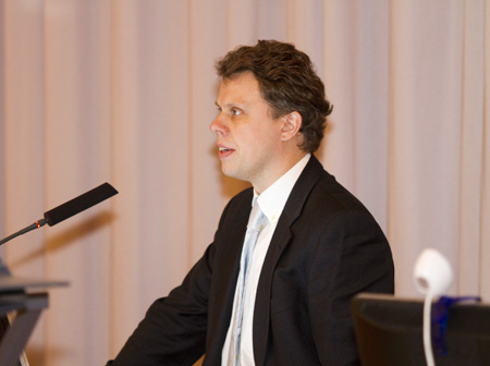 Neuvonantaja Antti Loikas ulkoasiainministeriön Afrikan ja Lähi-idän osastolta luennoi suomalaisesta kauppapolitiikasta kehitysmaissa.