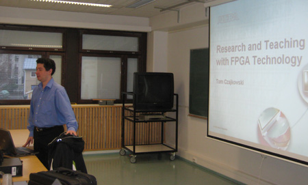 Seminaarin pääluennoitsijana toimi Tom Czajkowski Toronton yliopistosta, Kanadasta. Luennossaan Czajkowski keskittyi erityisesti Alteran FPGA-piirien ohjelmointiin ja niiden opettamiseen. Vamkin opettajat Yang Liu ja Johan Dams esittelivät FPGA-sovelluksia, joita on toteutettu Vamkin robottijalkapalloprojektissa. Lisäksi professori Timo D. Hämälainen esitteli Tampereen teknillisen yliopiston sulautettujen järjestelmien opetus- ja tutkimustoimintaa.