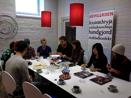 VAMKin vaihto-opiskelijat pääsivät maistelemaan käsintehtyä suklaata, kun English Conversation -ryhmän opiskelijat tutustuivat vastikään Vaasan muuttaneen Hemgårdenin suussa sulaviin tuotteisiin.