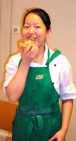 Tredje årets restonomstuderande Jin Ye har utvecklat nya recept av den karelska pirogen på kursen "Product Development and Sensory Evaluation". Ye har utgått ifrån sin egna matkultur och utvecklat asiatiskt inspirerade piroger. Förutom själva produktutvecklingen inkluderar kursen testning och analysering. Denna gång var det personalen i RC29-byggnaden som var utvald testpanel. |