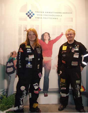 Vaasan ammattikorkeakoulun messuosastolla esittelijöinä toimivat muun muassa ympäristötekniikan opiskelija Elina Kauraoja ja tietotekniikan opiskelija Tero Siuruainen.
