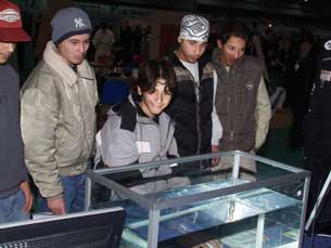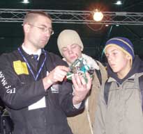 Ohjelmassa oli messuosastojen lisäksi tietoiskuja ja työnäytöksiä. Vaasan ammattikorkeakoulun tietotekniikan osaston monipuoliset ja erikoiset robottisovellukset pysäyttivät ohikulkijoita ruuhkaksi asti. Oikeanpuoleisessa kuvassa lehtori Jukka Matila.
