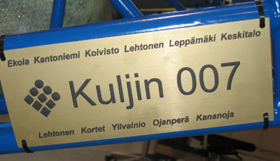 Kuljin 007 -kiituria voi käydä ihailemassa Technobothniassa kone- ja tuotantotekniikan laboratoriossa.