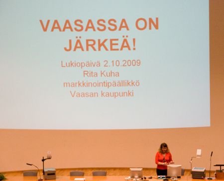 Noin 700 nuorta tutustui Vaasan ammattikorkeakoulun ja Vaasan yliopiston koulutustarjontaan torstaina 1.10.2009 järjestetyssä lukiopäivässä. Vieraita tapahtumaan tuli Alajärven, Jurvan, Kalajoen, Kurikan, Kyrönmaan, Kristiinankaupungin, Kokkolan, Laihian, Lappajärven, Perhon, Vimpelin, Teuvan, Seinäjoen, Peräseinäjoen ja Ylistaron lukioista. Päivä alkoi yliopistolla järjestetyllä alkuinfolla, jossa lukiolaiset toivottivat tervetulleiksi rehtorit Elisabeth Malka ja Matti Jakobsson. Vaasasta opiskelukaupunkina kertoi kaupungin markkinointipäällikkö Rita Kuha. Tutkimuslaboratorio Technobothniaan nuoret pääsivät tutustumaan puolen tunnin mittaisilla kierroksilla. Yhteisen ohjelman lisäksi molemmilla korkeakouluilla oli omaa ohjelmaa minimessujen sekä tietoiskujen muodossa.