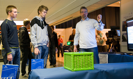 Tietojenkäsittelyn opiskelijat videoivat live-kuvaa messuilta.