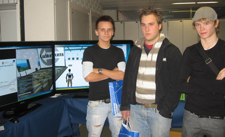 Laihian lukion opiskelijat vas. Jukka-Pekka Mäkelä, Esa Köykkä ja Roope Karppinen olivat kiinnostuneita virtuaalimaailmasta.