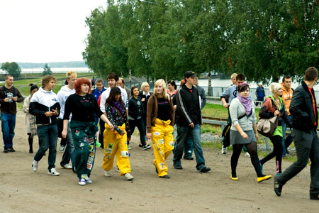 Uudet opiskelijat suuntasivat tuutoreiden johdolla kohti Sisäsatamaa, jossa väkeä vastassa oli Vamkin rehtori Jouko Paaso. Rehtorin tervehdyksen jälkeen jumppailtiin musiikin tahdissa. Aktiivisen aamun lopuksi jatkettiin vielä tutustumiskierrokselle Vamkin molemmille kampuksille.