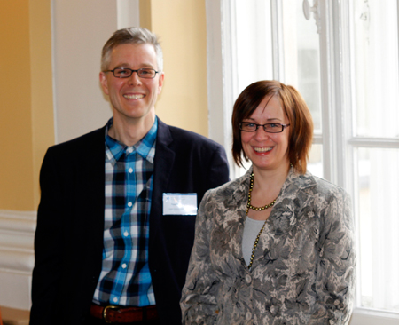 Lehtori Timo Malin ja yliopettaja Satu Lautamäki esittelivät VAMKin yrittäjyyden oppimuotoja. Malin vetää Business Factorya, jossa opiskelijat voivat ottaa yrittäjyyden ensiaskelia osuuskunnissa. Lautamäen ajankohtaisena hankkeena on Get Global, jossa International Business –koulutusohjelman opiskelijat ja alueen yritykset tuodaan yhteen, ja näin edistetään valmistuvien ulkomaalaisten työllistymistä ja Suomeen jäämistä.