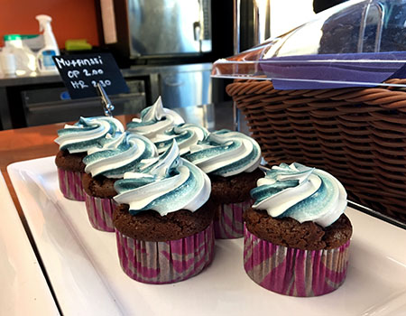 Serverissä herkuteltiin sinivalkoisilla leivoksilla.