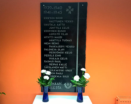 Koulumme sankarivainajia muistettiin kukkasilla.