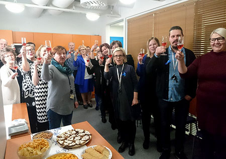 VAMKin henkilöstö nosti maljan syntymäpäiväsankarille.