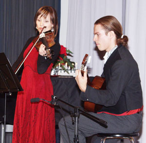 Tilaisuuden musiikista vastasi sairaanhoitajaksi valmistunut Paula Peltoharju viuluesityksellään. Häntä säesti kitaralla Jari Lehtonen.