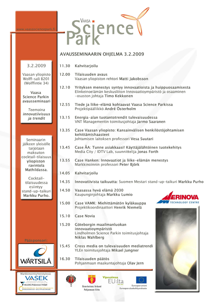 Vaasa Science Parkin kaikille avoin avausseminaari 3.2.2009