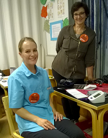 Heli Hjort ja VAMKin hoitotyön lehtori Suvi Kallio olivat mukana tapahtuman järjestelyissä.