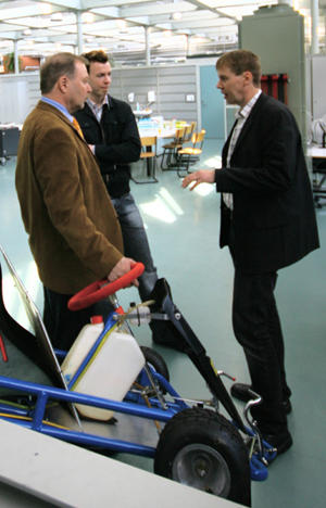 Vamkin laboratorioinsinööri Mika Billing esitteli koneosaston opiskelijoiden harjoitustyötä, Kuljin 007:ää. Kuvat: Vesa Sirén