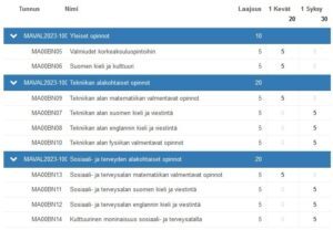 - Koulutuksen aikana kehität taitoja, joita tarvitset korkeakouluopinnoissa ja korkeakoulujen valintakokeissa, kuten suomen kielen taitoasi, vuorovaikutus- ja viestintäosaamistasi, opiskelu- ja digitaitojasi sekä matematiikan ja fysiikan osaamistasi.