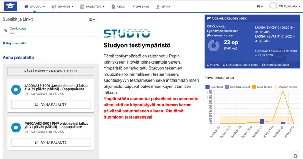 Kuva 1: Peppi – Opiskelijan työpöydän etusivu