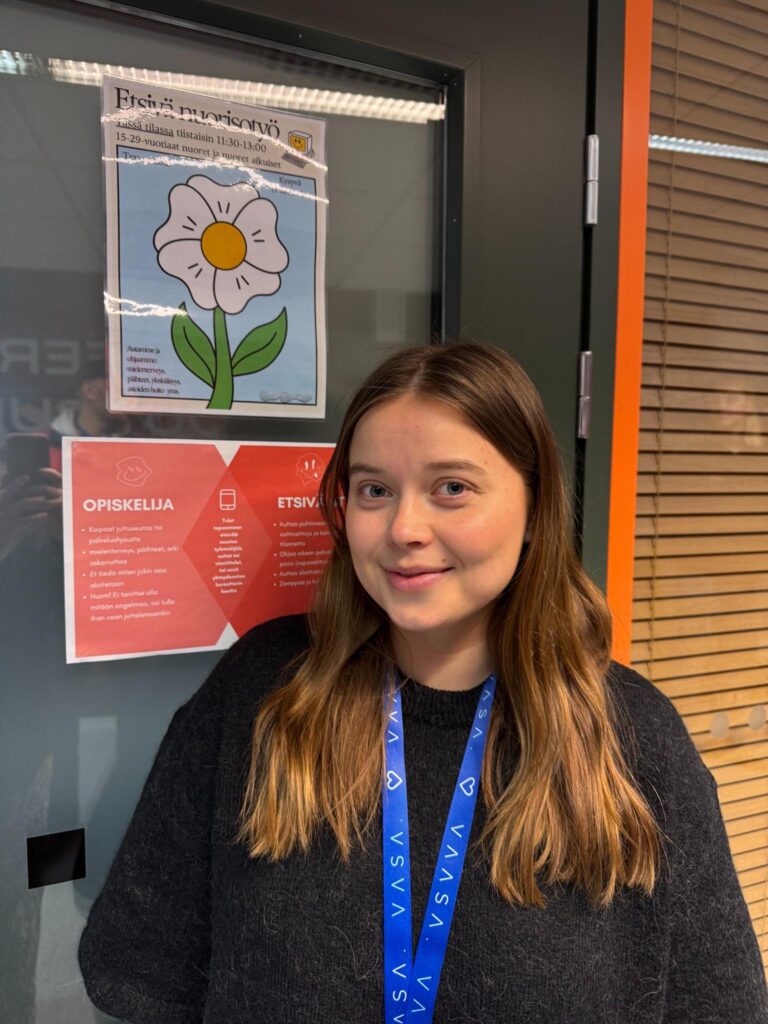 Viivi Ahonen toimii etsivänä nuorisotyöntekijänä kampusalueella. Hän on tavattavissa paikan päällä joka tiistai klo 11.30–13.00 tilassa A1128.