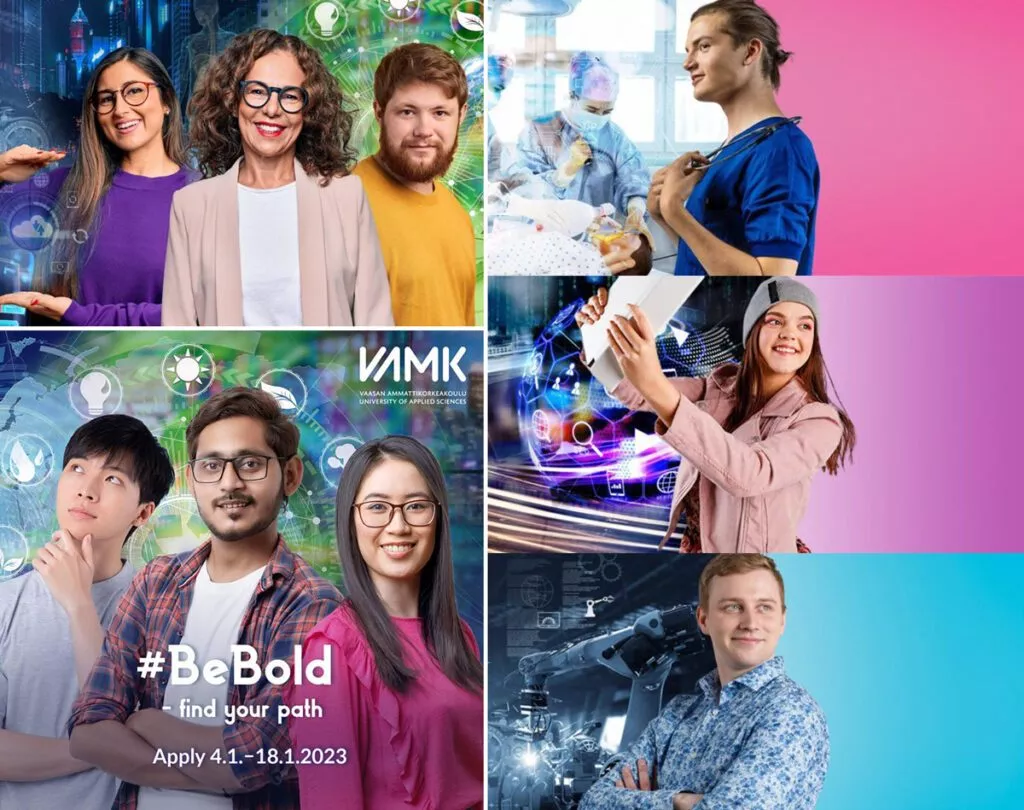 Me Vaasan ammattikorkeakoulussa uskomme, että jokaisella on potentiaali muuttaa maailmaa. Innostamme ja tulemme innostetuiksi, kokeilemme rohkeasti uutta, ja olemme luovuuden ja edelläkävijyyden eturintamassa. Yhdistämme tekniikan, liiketalouden, sosiaali- ja terveysalan sekä muotoilun monialaiseksi voimavaraksi, joka vastaa nyky-yhteiskunnan monimutkaisiin haasteisiin. Olemme osaamisen tärkein kumppani opiskelijoillemme, henkilökunnallemme ja kumppaneillemme niin kansallisesti kuin kansainvälisesti.