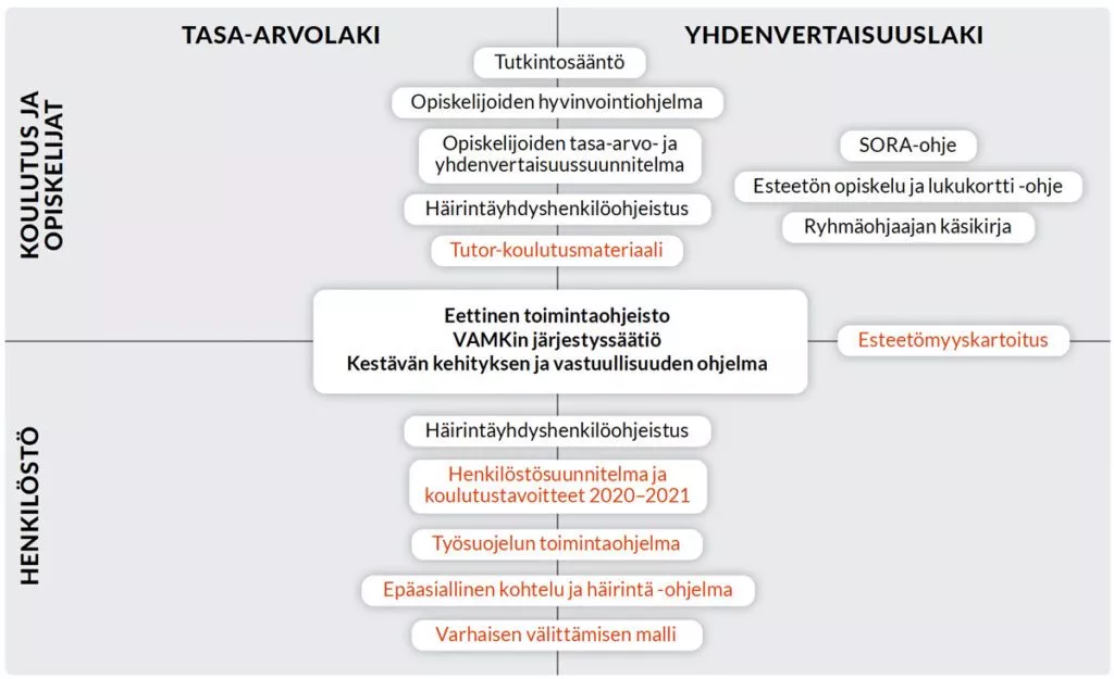 KUVIO 1. Vaasan ammattikorkeakoulun tasa-arvon ja yhdenvertaisuuden edistämiseen kantaaottavat dokumentit.