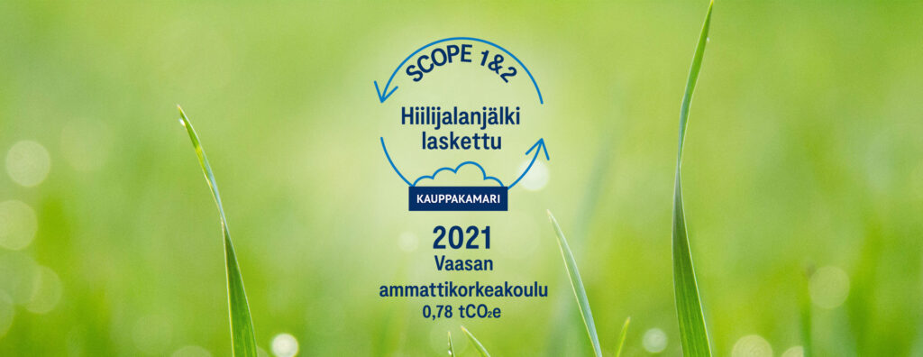 Hiilijalanjälki laskettu -merkki kertoo VAMKin laskeneen oman toimintansa (scope 1) ja ostoenergian päästöt (scope 2). Merkin myöntämisen yhteydessä Keskuskauppakamari vahvistaa, että laskenta on tehty.